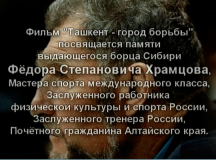Фильм "Ташкент - город борьбы" посвящен памяти выдающегося борца Сибири Федора Степановича Храмцова, Мастера спорта международного класса, Заслуженного работника физической культуры и спорта...