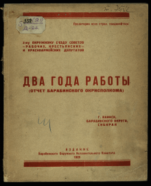 Отчёт Барабинского окружного исполнительного комитета о работе в течение 1927-1929 гг., о достигнутых успехах в отдельных отраслях хозяйства и культурного строительства округа, а так же о стоящих пере...
